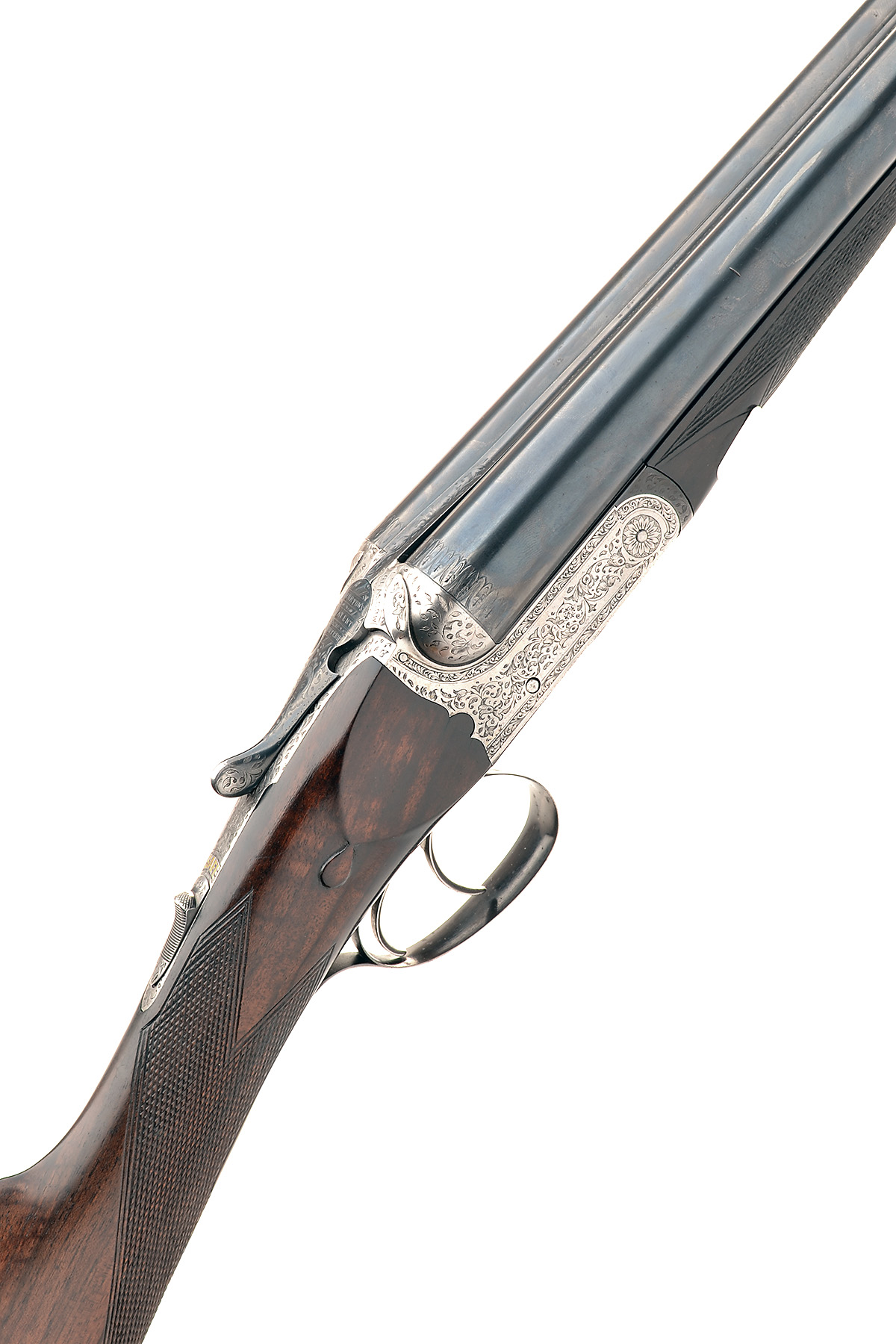 W. HORTON 12-BORE 'HORTON'S PATENT POLYGRIP' BOXLOCK EJECTOR, serial no. 2360, 28in. nitro barrels, the rib engraved 'W. HORTON. 98. BUCHANAN ST. GLASGOW. (PATENT ADJUSTABLE TRIGGER ACTION).', 2 1/2in. chambers, bored approx. true cyl. and imp. cyl. choke, (left wall at 19) scroll-back treble-grip action with carved stylised acanthus fences marked 'W. HORTON. GLASGOW.', the toplever engraved with an elemental and 'HORTON'S PATENT POLYGRIP', automatic safety with gold-inlaid 'SAFE' detail, engraved with acanthus scroll borderwork and trailing foliate scroll motifs, 14 1/2in. figured stock, bolstered fore-end wood, weight 6lb. 10oz.,