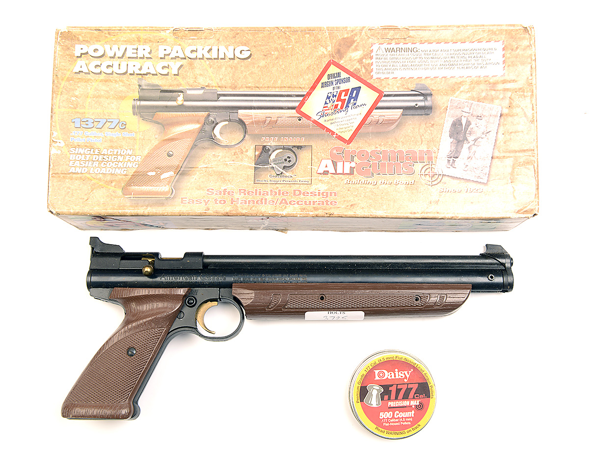 A BOXED .177 MULTI-PUMP PNEUMATIC AIR-PISTOL SIGNED CROSMAN, MODEL 1377 AMERICAN CLASSIC, serial no. 701B22826,