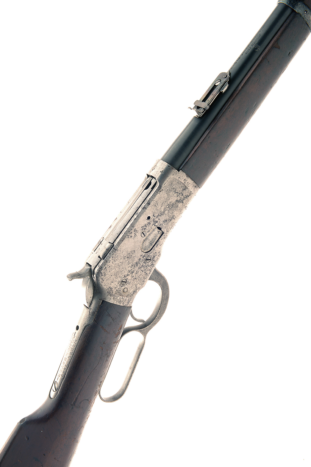 WINCHESTER .44 /40 'WIN M92' LEVER-ACTION REPEATING SPORTING RIFLE, serial no. 790886, 20in. nitro barrel 'NUMRICH ARMS', block-mounted blade fore-sight, v-notch rear-sight with folding ladder sight, full length tubular magazine, no safety, saddle ring, 12 3/4in. straight stock