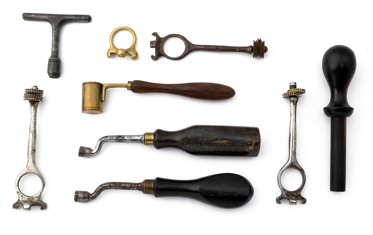A COLLECTION OF VINTAGE GUNCASE ACCESSORIES, (9)
