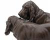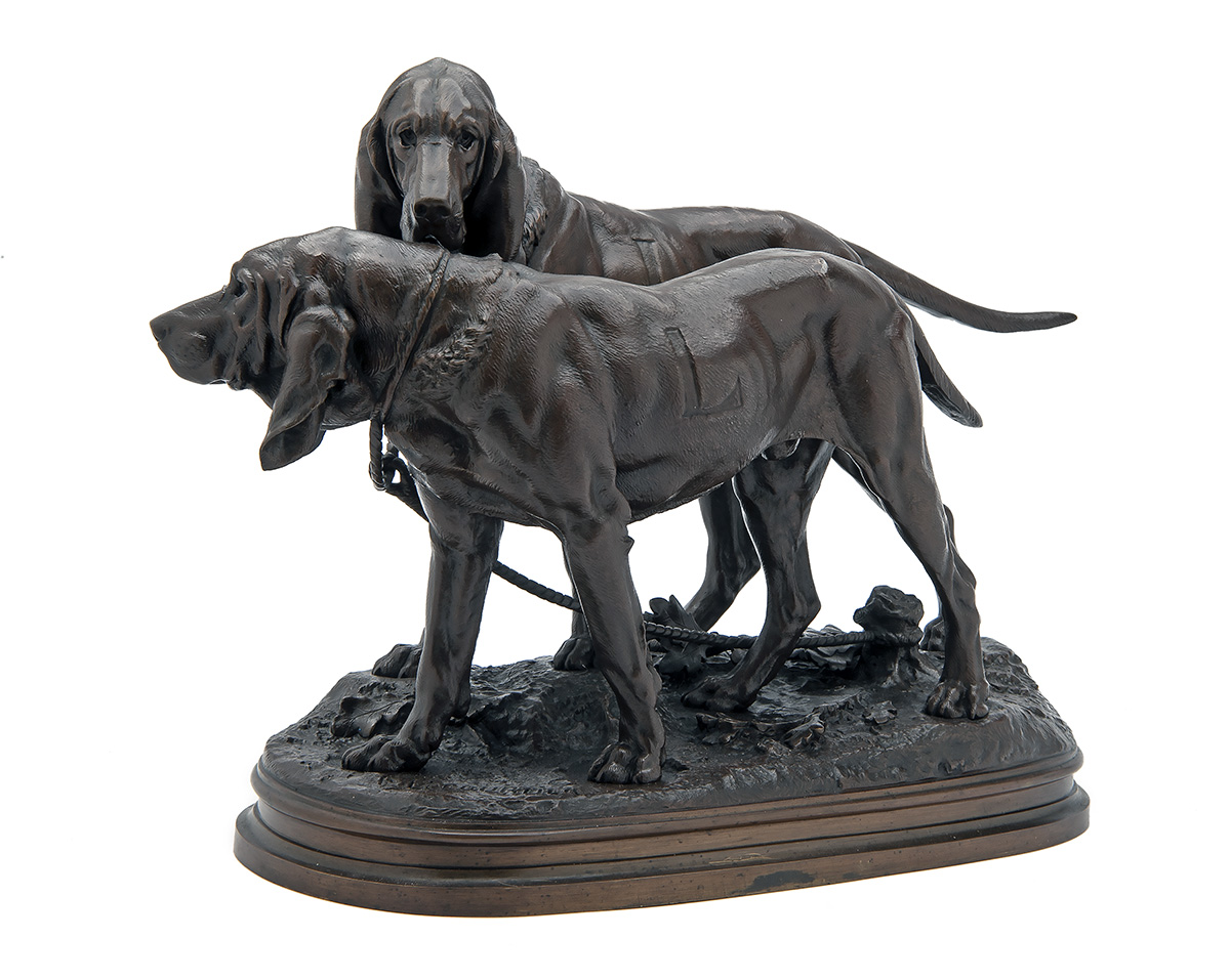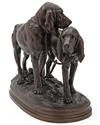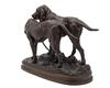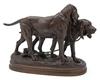 A FRENCH PATINATED BRONZE GROUP OF TWO HOUNDS, ENTITLED 'DEUX CHIENS DE CHASSE ATTACHES',