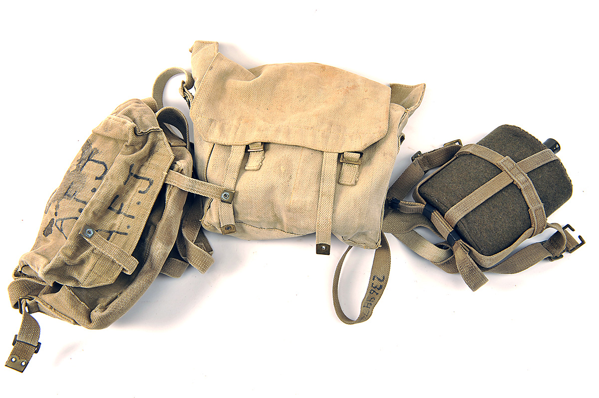 TWO BRITISH PATTERN 37 SMALL-PACKS AND A PATTERN 37 CANTEEN, (3)