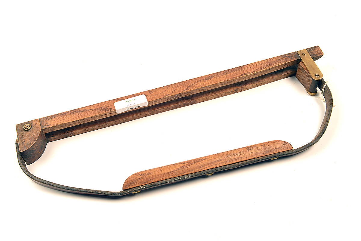 A VINTAGE OAK CAME CARRIER, with leather carry handle, brass fittings