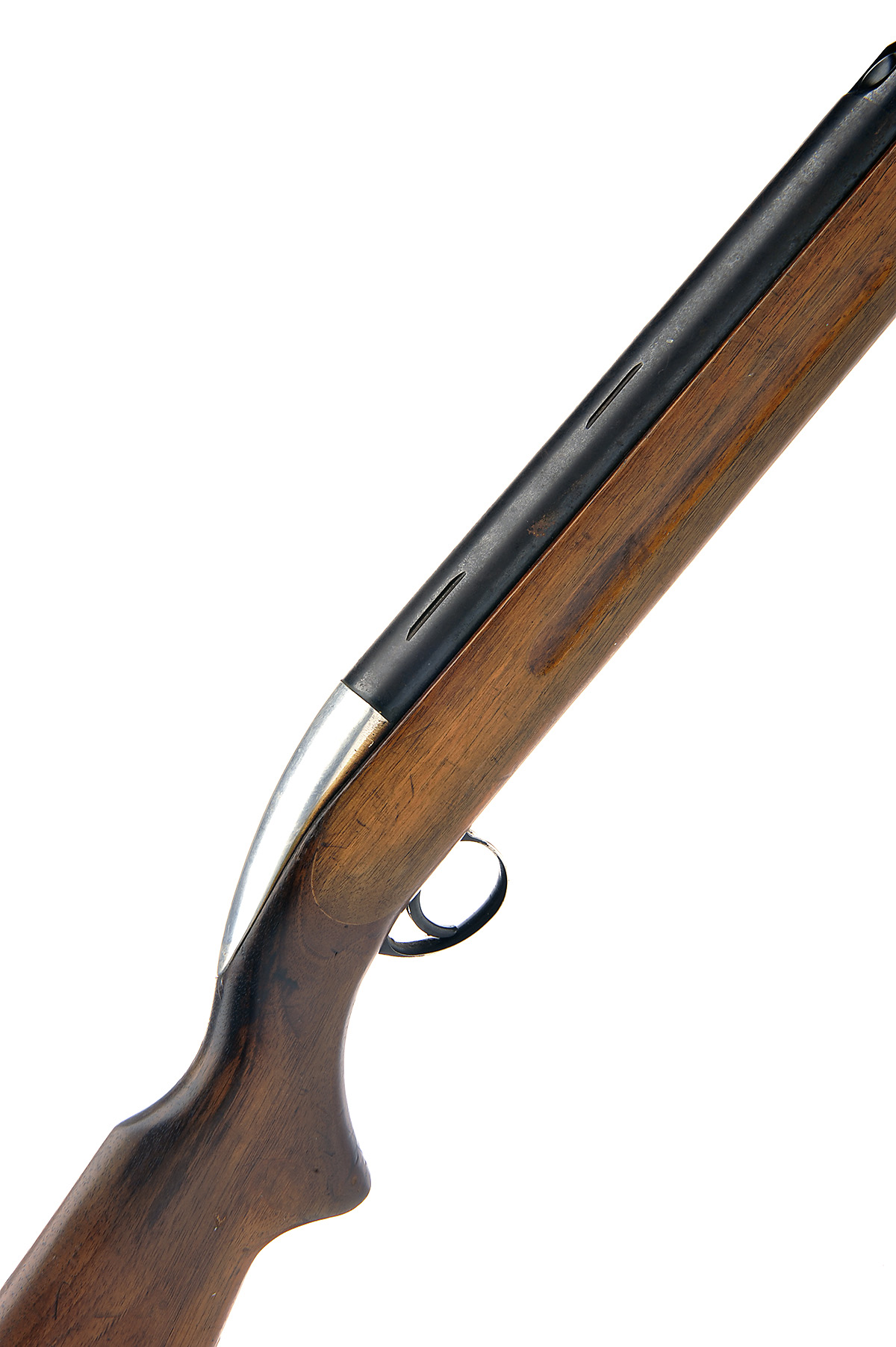 A .22 UNDER-LEVER AIR-RIFLE SIGNED BSA, MODEL 'AIRSPORTER MKII', serial no. GD18507, with blued and sighted 18in. barrel, automatic tap, blued air-chamber with four telescopic sight grooves (traces of etching), alloy trigger unit, walnut three-piece half-stock and flush fitting under-lever, finish worn