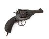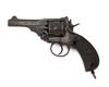 circa 1901, with 4in. blacked barrel, integral blade fore-sight, sighting notch to the stirrup barrel locking catch, fluted quick-release cylinder with holster guides, chequered hard rubber grips with birdshead butt, lanyard ring at heel, re-issue stamps to 1910, finish worn