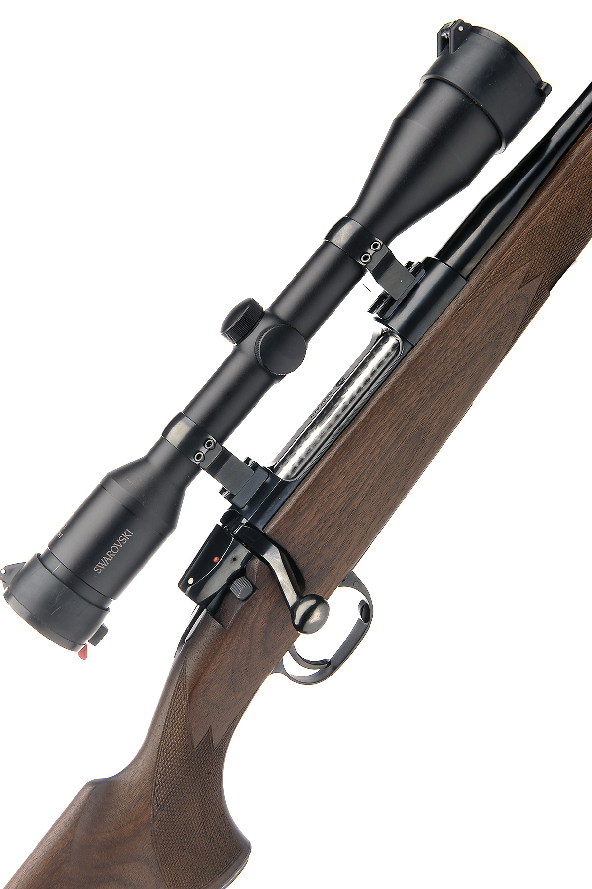 HEYM .25-06 BOLT-MAGAZINE SPORTING RIFLE, serial no. 38923, 23 3/4in. unsighted nitro barrel, the receiver mounted with a Swarovski 6x42 Habicht telescopic sight, serial no. P774204202, hinged floorplate with push button release, pistolgrip stock with cheekpiece, pistolgrip-cap, sling swivels, 14 1/2in. pull including 7/8in. rubber recoil pad, weight 9lb. 1oz.