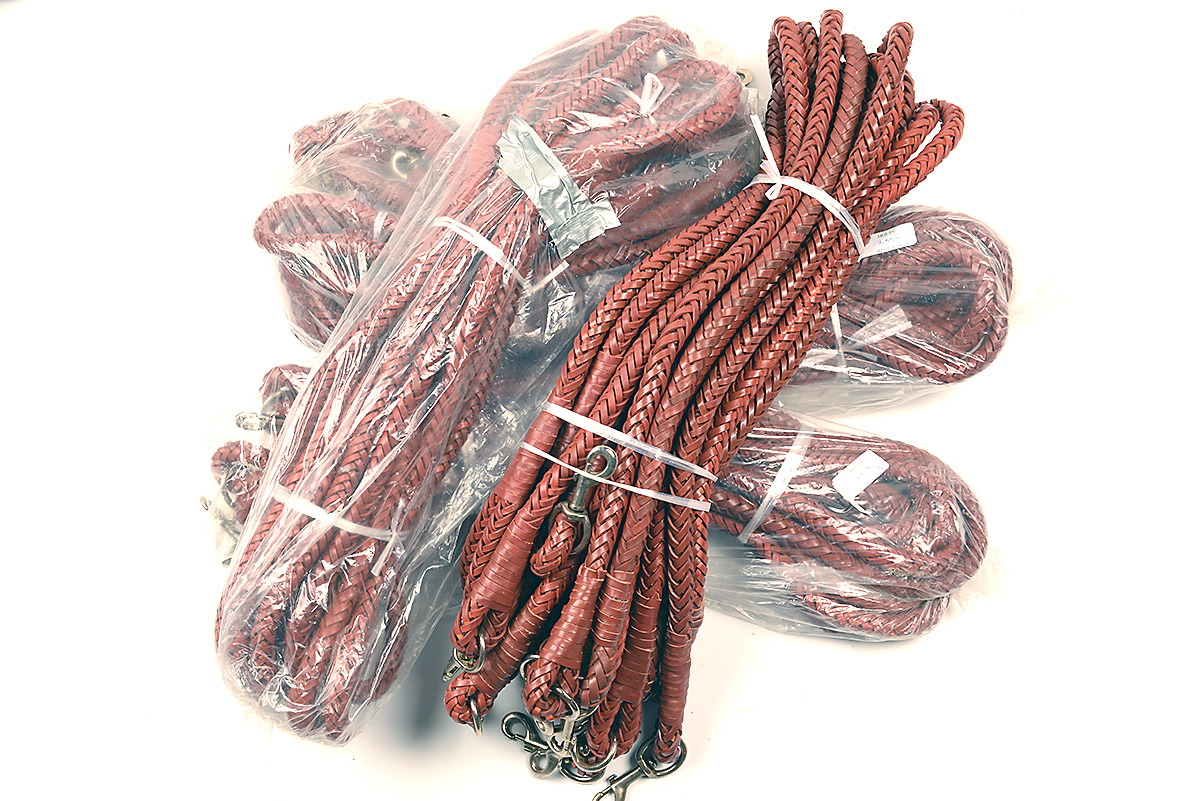 A COLLECTION OF 40 UNUSED / UNOPENED BRAIDED LEATHER DOG LEADS (40)