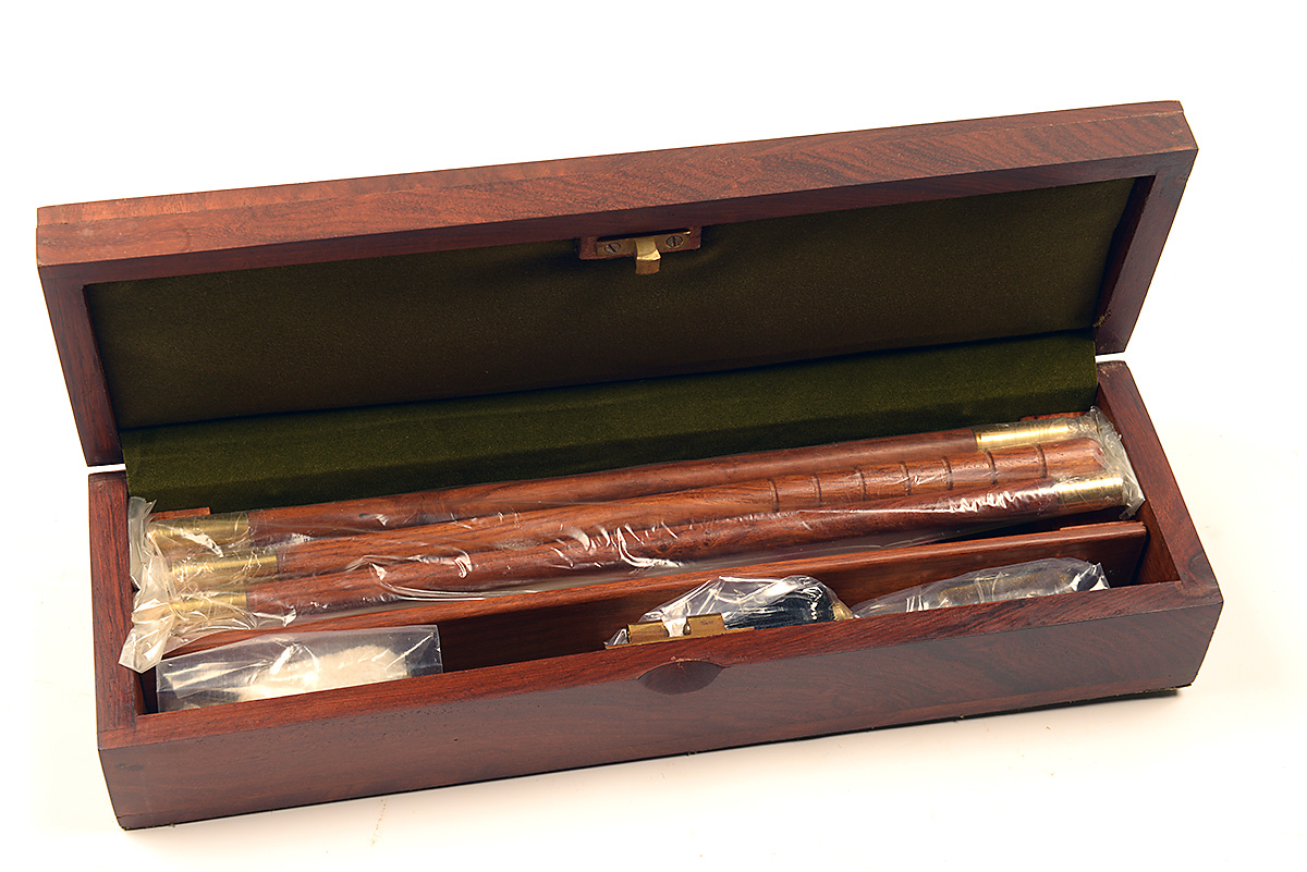 † A NEW AND UNUSED OAK CASED 'PRESENTATION' GUN CLEANING KIT, including an oak and brass cleaning rod, brush, mop and jag