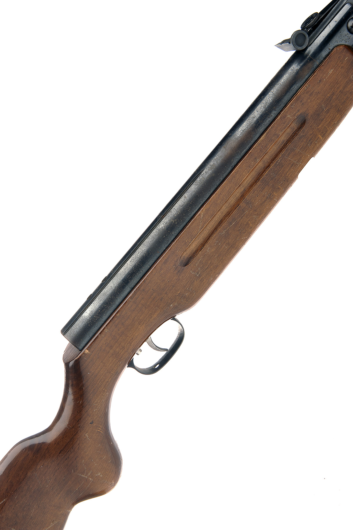 A .22 BREAK-BARREL AIR-RIFLE SIGNED WEIHRAUCH, MODEL 'HW35STD', serial no. 684559, with 19 1/2in. barrel, blued air-chamber and beech half-stock, finish worn