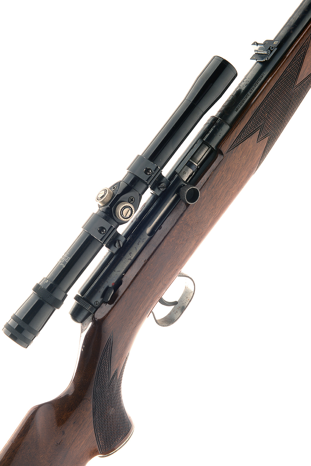 KRICO .22 L.R. SELF-LOADING SPORTING RIFLE, serial no. 263722, 22 3/8in. nitro barrel, ramp-mounted bead fore-sight, 2 x leaf rear-sight, Linsfield 4x20 telescopic sight, manual safety, detachable magazine, pistolgrip stock, sling swivels