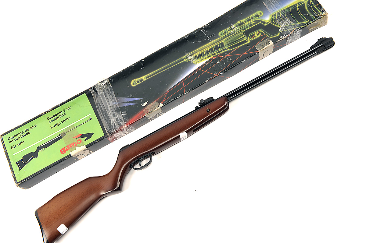 A BOXED .22 UNDER-LEVER AIR-RIFLE SIGNED GAMO, MODEL CF16, serial no. 1594774,