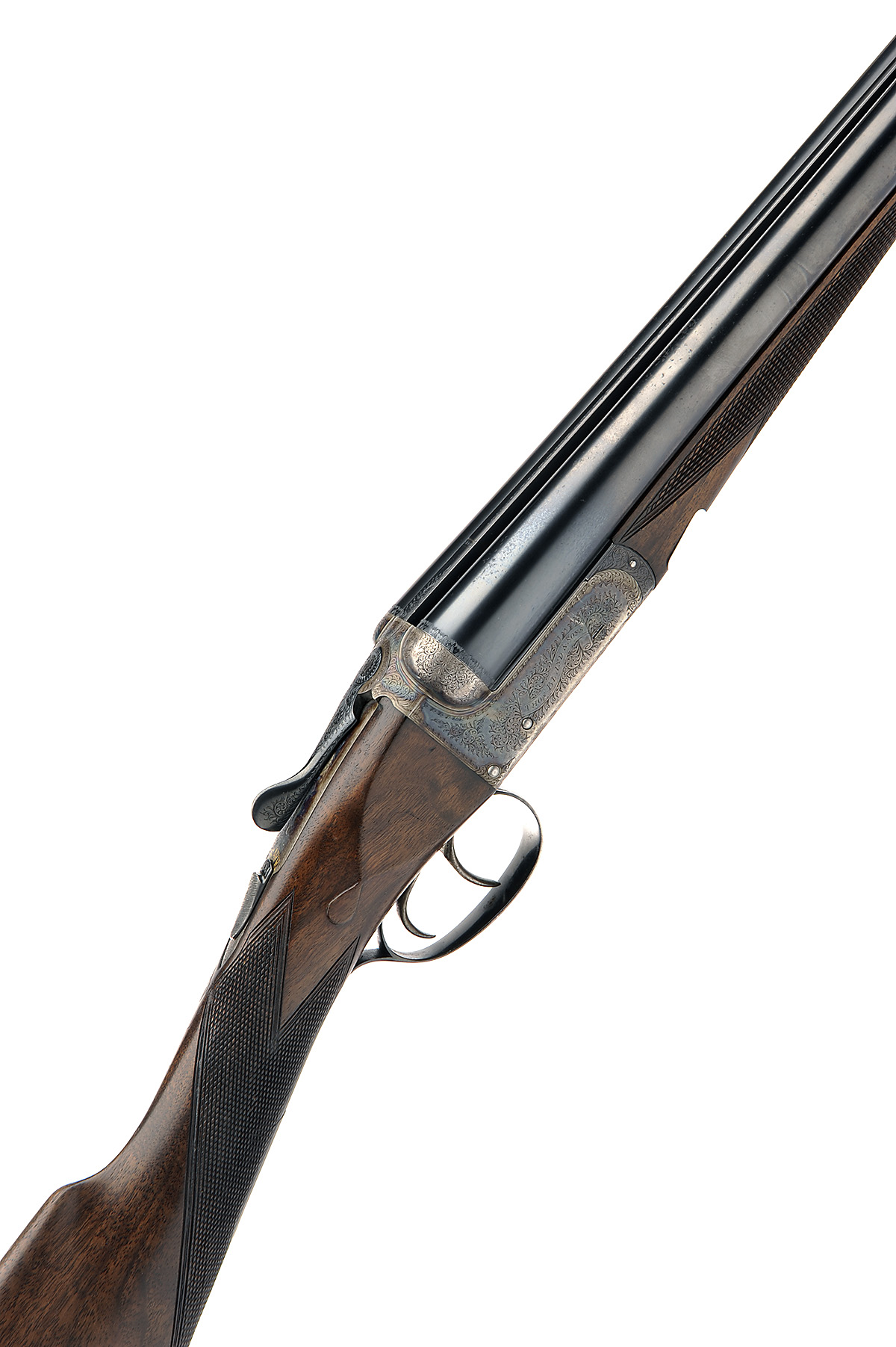 THOMAS BLAND & SONS 12-BORE BOXLOCK EJECTOR, serial no. 19081 / 146899, 28in. nitro barrels, the rib engraved 'THOs. BLAND & SONS. 21/22. NEW ROW. ST. MARTINS LANE. LONDON. W.C.' (rib slightly loose at muzzle), 2 3/4in. chambers, bored approx. imp. cyl. and 1/2 choke, automatic safety with gold-inlaid 'SAFE' detail, border and acanthus scroll engraving surrounding the makers name within a scrolling banner, retaining much original colour-hardening and finish, 16 1/2in. stock (cracked at hand) including 1 1/2in. wooden extension, weight 6lb. 8oz., in a canvas and leather slip