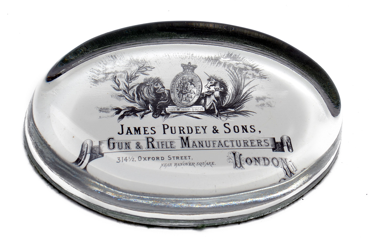 JAMES PURDEY & SONS A JAMES PURDEY & SONS TRADE LABEL PAPERWEIGHT,