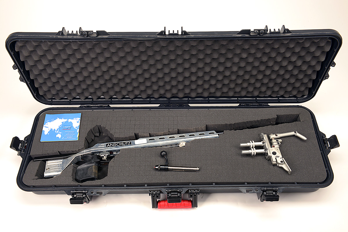 A LEFT-HANDED J.G ANSCHUTZ .22 L.R. 'SUPER MATCH MODEL 1913' BOLT-ACTION TARGET RIFLE, serial no. 313 0248, 27in. nitro barrel, fitted on a HPS 'convertible' fullbore & smallbore target stock, together with a Blade ABS case