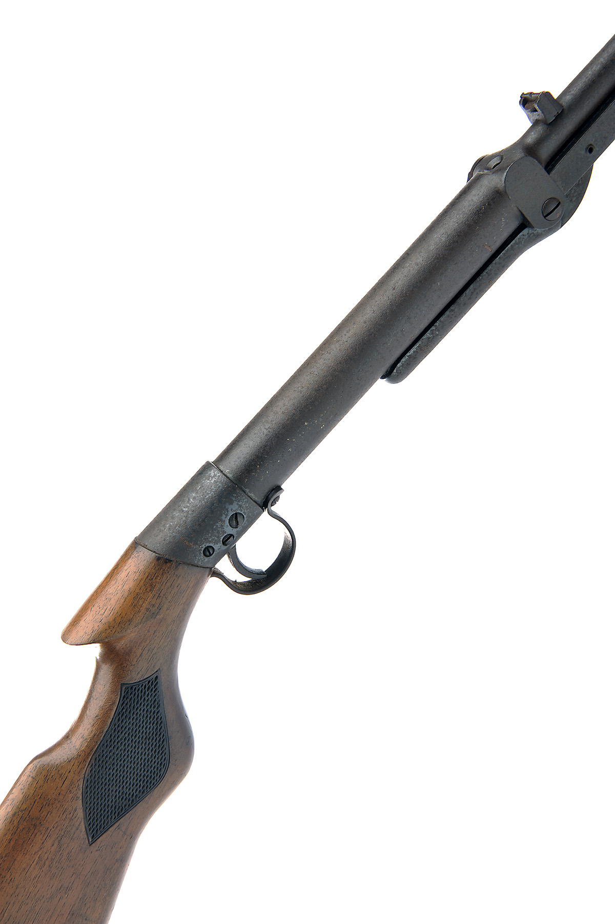 A .177 UNDER-LEVER AIR-RIFLE SIGNED BSA, MODEL 'LIGHT' or 'LADIES PATTERN', serial no. L33250, for 1928, with sighted 17in. barrel tap loading breech, plain air-chamber (no etching visible), saw-handled walnut butt and push-button under-lever, rusted externally