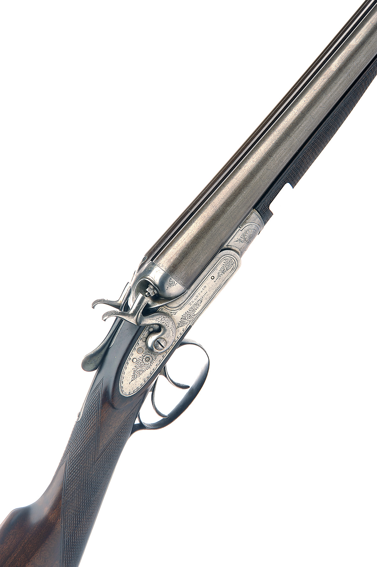 PLAYFAIR 12-BORE TOPLEVER HAMMERGUN, serial no. 10002, 28 1/4in. nitro reproved damascus barrels, rib engraved 'PLAYFAIR. ABERDEEN.', 2 1/2in. chambers, bored approx. true and imp. cyl., treble-grip action with carved percussion fences, rebounding locks, border and partial scroll engraving, brushed finish, 14 1/4in. stock including buttplate