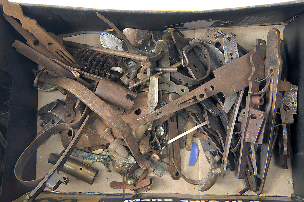 A COLLECTION VARIOUS VINTAGE GUN PARTS,
