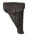 undated late World War Two production, with 4 3/4in. barrel, open slide, fixed sights, machined frame and brown ribbed bakelite grips, retaining much thin blue wartime economy finish and complete with a black soft-shell holster and spare magazine for same