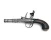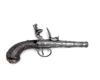 A 40-BORE FLINTLOCK CANNON-BARRELLED RIFLED POCKET-PISTOL WITH WHITE METAL MOUNTS, no visible serial number,