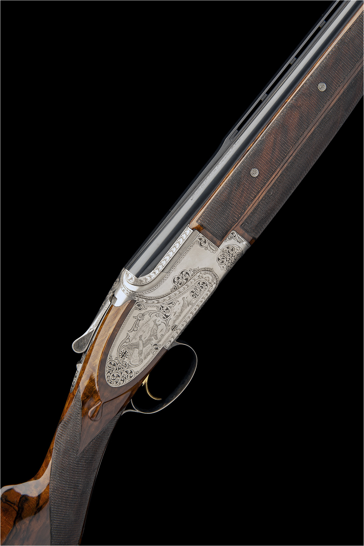 A CHAUVIN-ENGRAVED 12-BORE CUSTOM SIDEPLATED SINGLE-TRIGGER OVER AND UNDER EJECTOR, serial no. 9705,