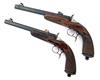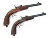 A GOOD CASED PAIR OF 6mm (FLOBERT) SINGLE-SHOT GALLERY PISTOLS, UNSIGNED, serial no's. 2878,