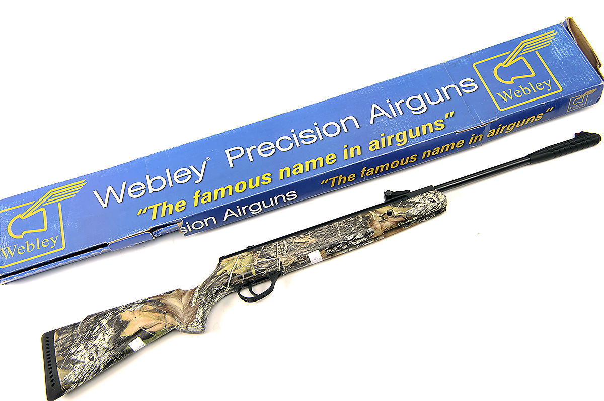 A BOXED FAC-RATED .22 BREAK-BARREL AIR-RIFLE SIGNED WEBLEY, MODEL VMX CAMO serial no. 051330106,