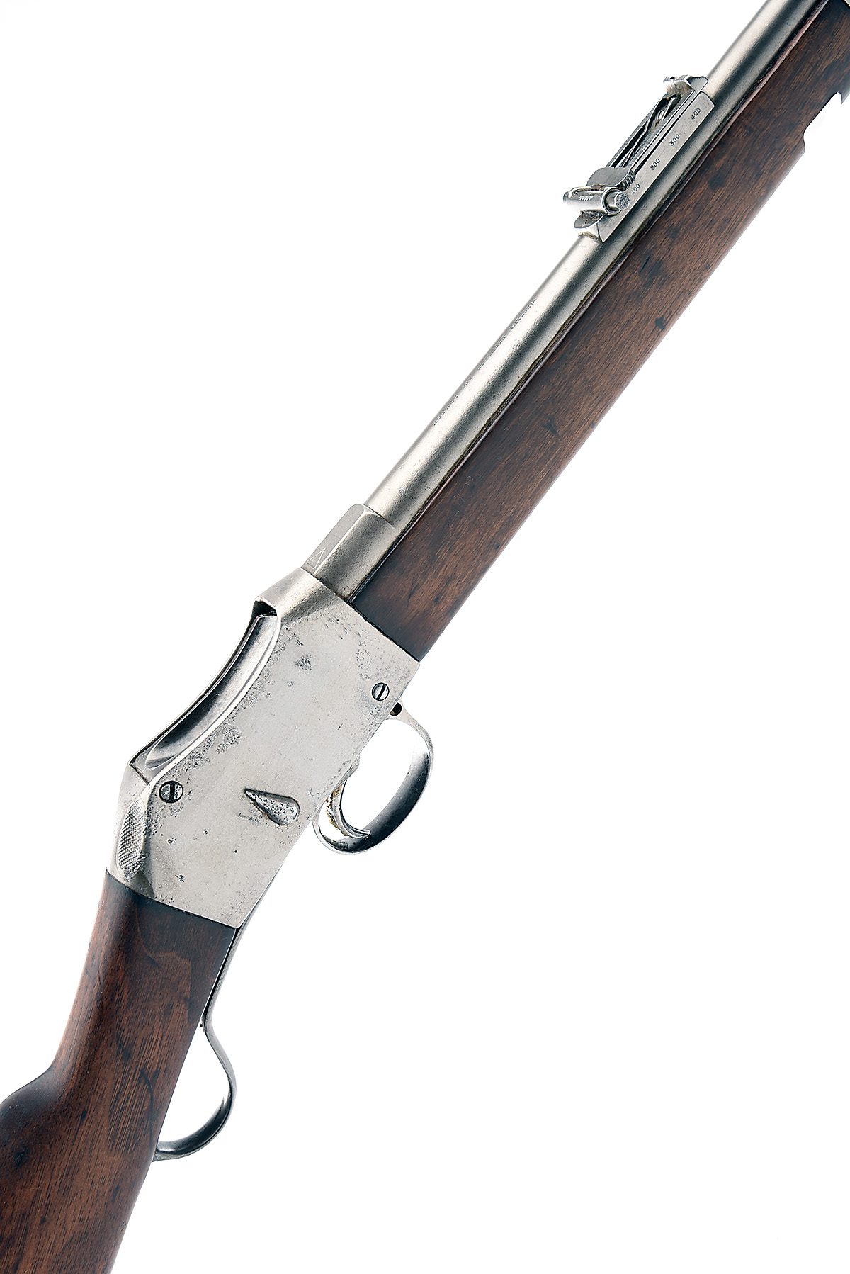 circa 1895, with 33 1/4in. barrel signed by the maker (stripped of finish), plain action also cleaned of finish (some pitting), walnut butt-stock, full-length fore-end and missing clearing-rod