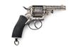 with 2 3/4in. barrel, solid frame, 'church window' fluted cylinder, solid frame, double action mechanism and chequered walnut grip, finish worn