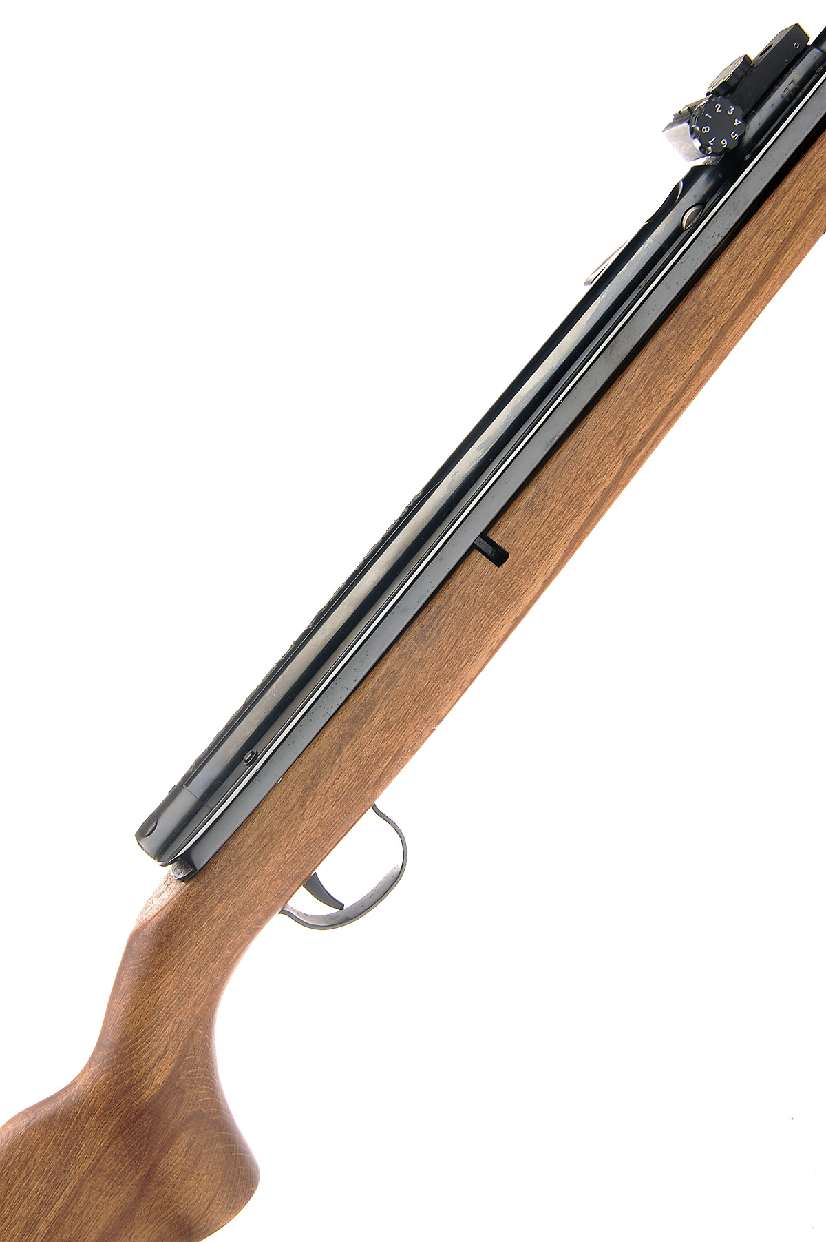 A .177 SIDE-LEVER AIR-RIFLE SIGNED WEBLEY & SCOTT, MODEL 'OSPREY', serial no. 28728, with 19 1/4in. sighted barrel, tap-action breech, blued air-chamber and re-finished beech half-stock, generally collector's condition