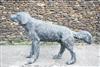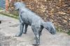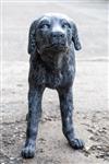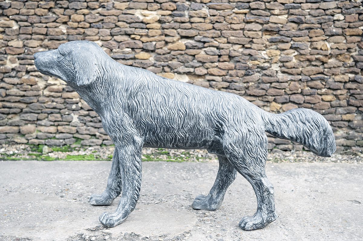 A CAST STEEL LIFE SIZE RETRIEVER, measuring approx. 28in. x 25in. x 9in.