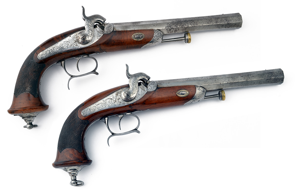 A PAIR OF 16-BORE PERCUSSION RIFLED OFFICER'S PISTOLS,