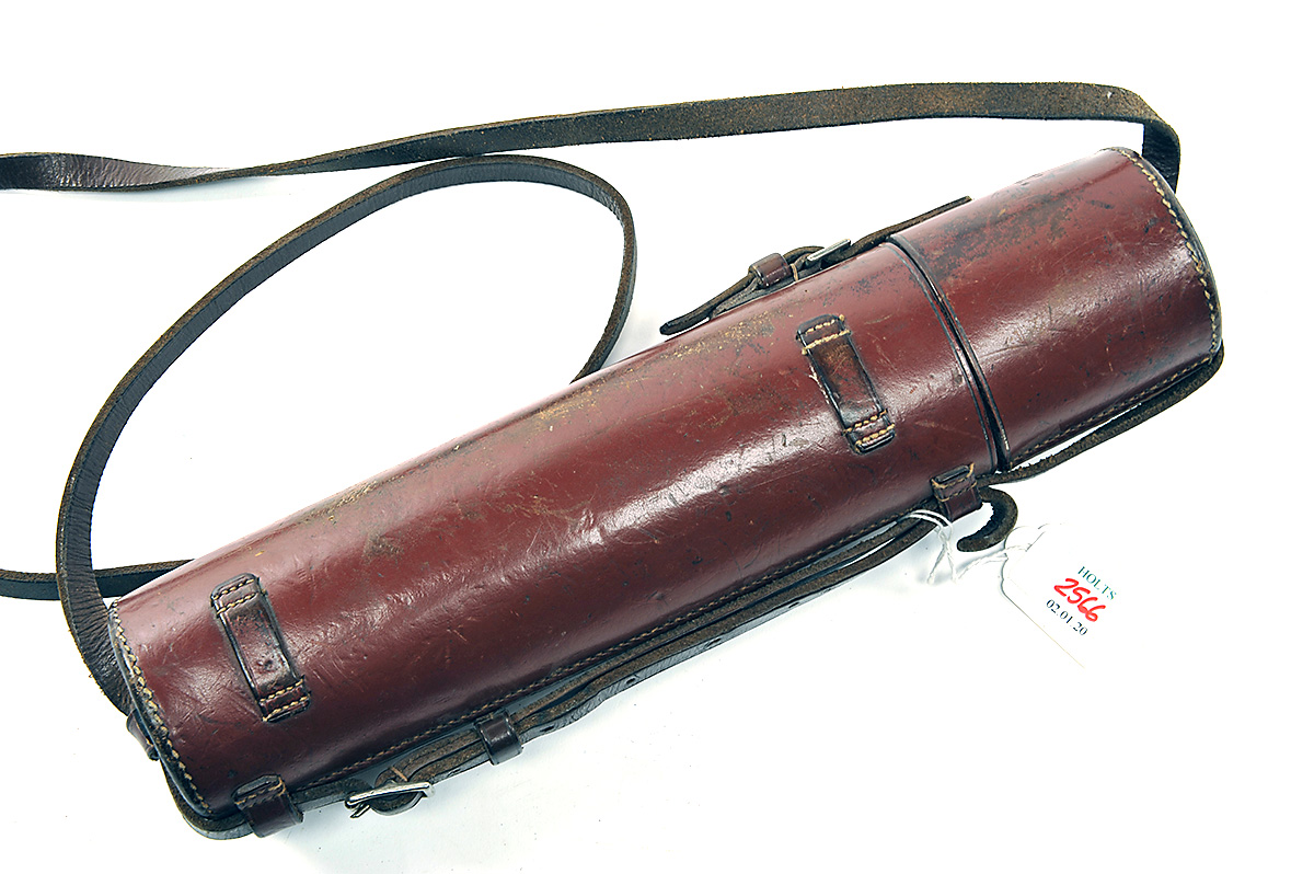 A GOOD VINTAGE LEATHER TELESCOPIC SIGHT CASE,