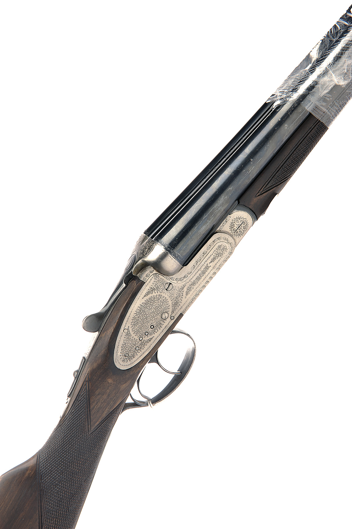 SILVER KESTREL 12-BORE SIDELOCK EJECTOR, serial no. 316725, 27in. nitro barrels, 2 3/4in. chambers, bored approx. 1/4 choke in both, removable striker discs, automatic safety, cocking indicators, border and acanthus scroll engraving, 14in. stock, fore-end not engaging with loop correctly