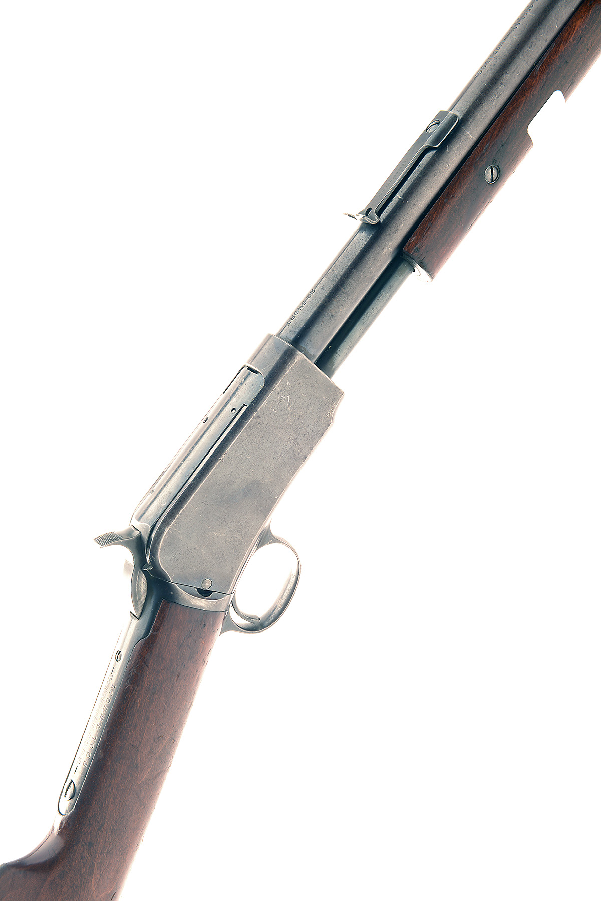 WINCHESTER .22 SHORT 'MODEL 1906' PUMP-ACTION REPEATING TAKE-DOWN SPORTING RIFLE, serial no. 21725, 20in. nitro barrel, blade fore-sight, leaf rear-sight, no safety, full-length tubular magazine, inner spring missing, 13 3/4in. straight stock