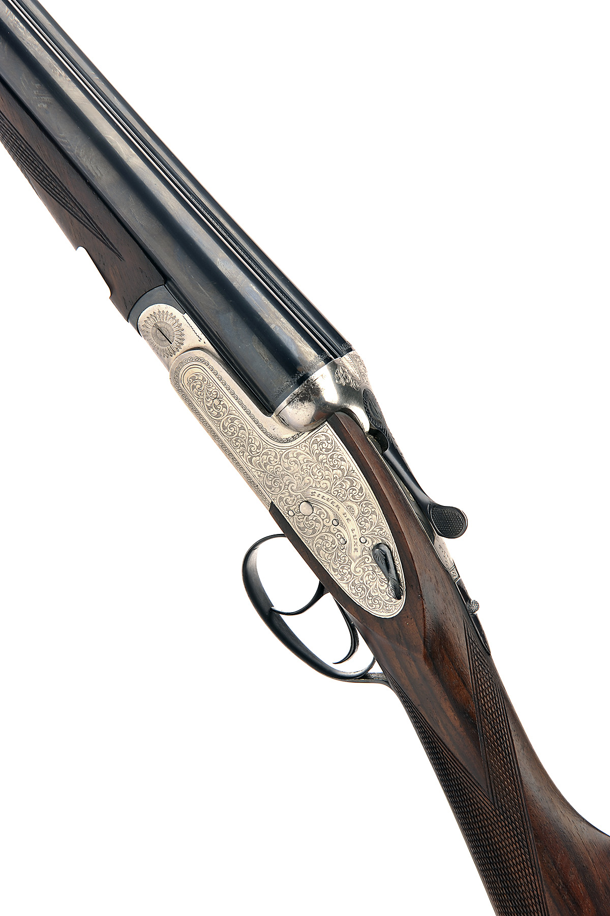 GOROSABEL 12-BORE 'SILVER DE LUXE' HAND-DETACHABLE SIDELOCK EJECTOR, serial no. 110336, 27in. nitro barrels (wall thickness below recommended minimum), 2 3/4in. chambers, bored approx. true cyl. and 1/4 choke, removable striker discs, automatic safety, hand-detachable lockplates, articulated front trigger, acanthus scroll engraving, bright finish, 14 1/2in. stock, weight 6lb. 9oz.