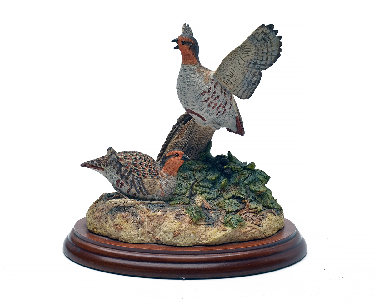 A 'BORDER FINE ARTS' 'STUBBLE SURPRISE' TWO PARTRIDGES SCULPTURE BY JOHN BROWN