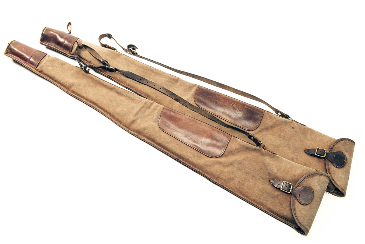 A PAIR OF CANVAS AND LEATHER SINGLE FLEECE-LINED GUNSLIPS,
