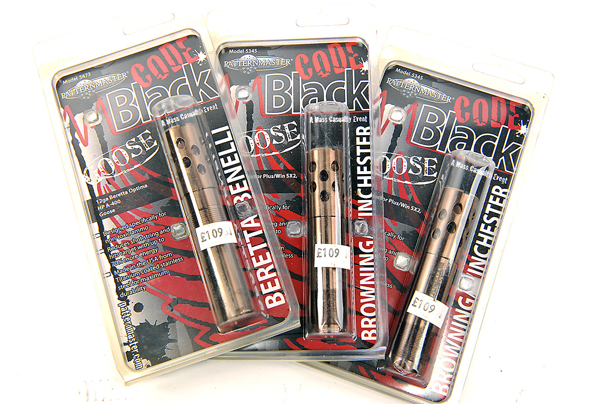 THREE NEW AND UNUSED PATTERNMASTER CODE BLACK 12g INVECTOR PLUS / WIN SX2 (GOOSE) CHOKES