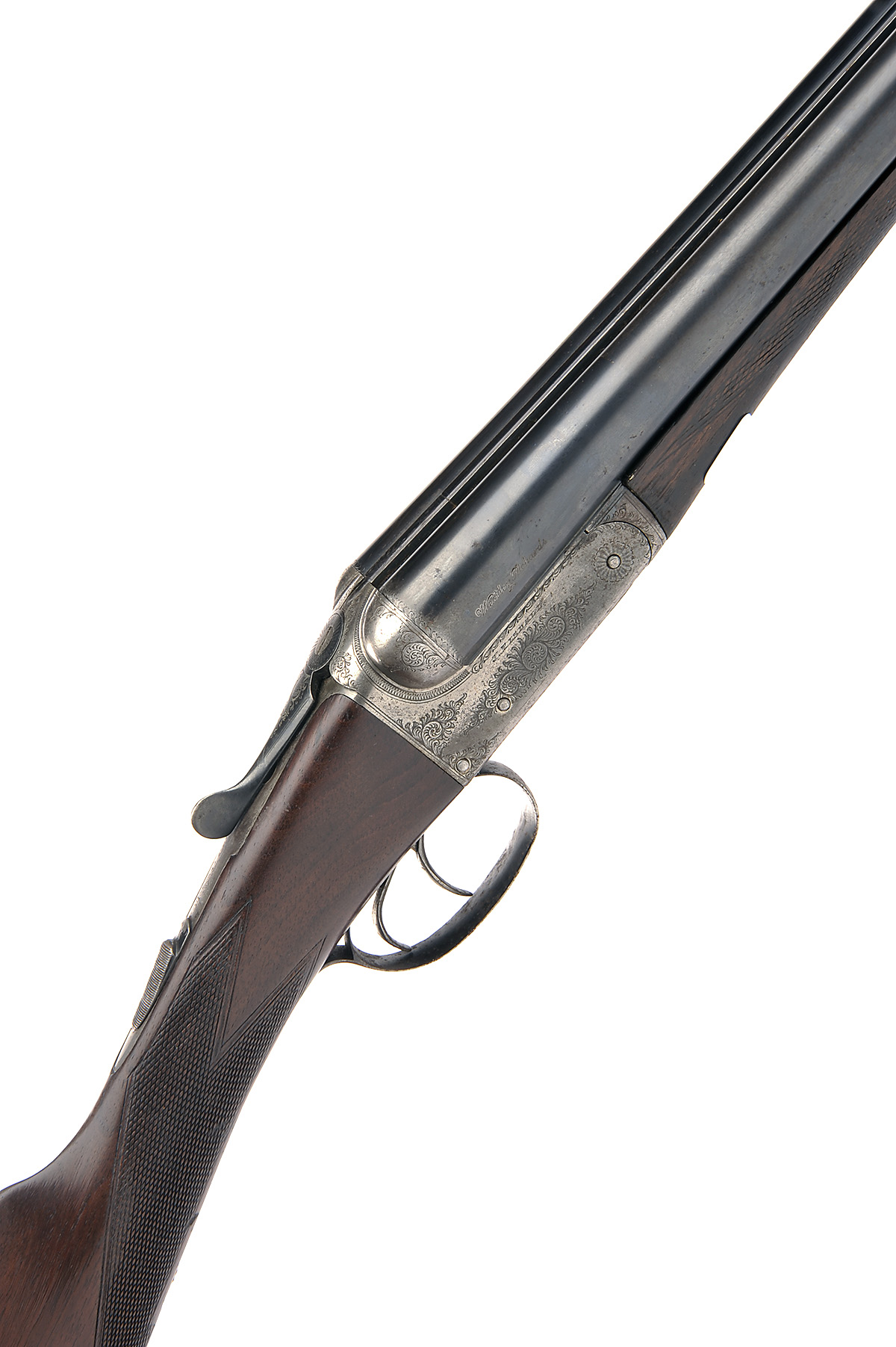 T. TISDALL 12-BORE BOXLOCK EJECTOR, serial no. 028, 28in. sleeved nitro barrels, 2 1/2in. chambers, bored approx. 1/4 and 1/2 choke, treble-grip action, automatic safety with inlaid 'SAFE' detail, ejectors at fault, border and partial acanthus scroll engraving, 14 1/4in. stock