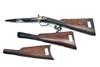 A COLLECTION OF FIVE VARIOUS GUN STOCKS, comprising of a blunderbuss stock, a percussion stock, an over and under stock, a hammergun stock