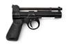 A .177 BARREL-COCKING AIR-PISTOL SIGNED WEBLEY & SCOTT, MODEL 'JUNIOR', batch no. 470, WITH REPRODUCTION BOX, post war, with 6in. barrel, adjustable rear-sight, blacked frame and air-chamber and black chequered plastic grips, appearing little used in a good reproduction card carton