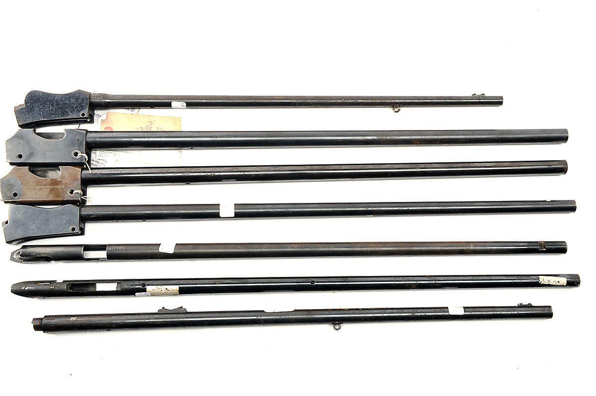 A COLLECTION OF SEVEN .22 L.R. BARRELS ONLY, serial no.'s 12145, V2550, V793, 35163, UE8361, 53055, UE5684X, comprising of a BSA .22 L.R. martini barrel, a BSA .22 L.R. century barrel only, BSA .22 L.r. martini barrel, BSA .22 L.R. martini, a BSA martini, BSA .22 L.R. martini