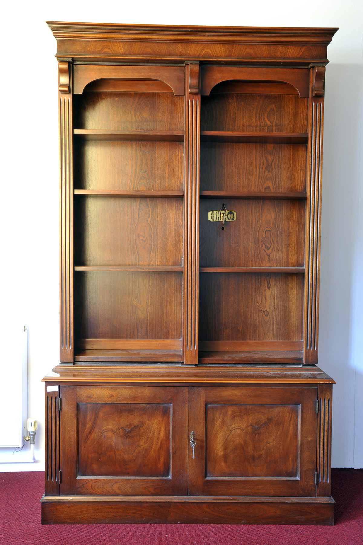 with a faux-fronted bookcase, concealed baize-lined two door cabinet, with provision for up to eleven guns, measuring six feet nine inches high and four feet wide