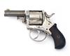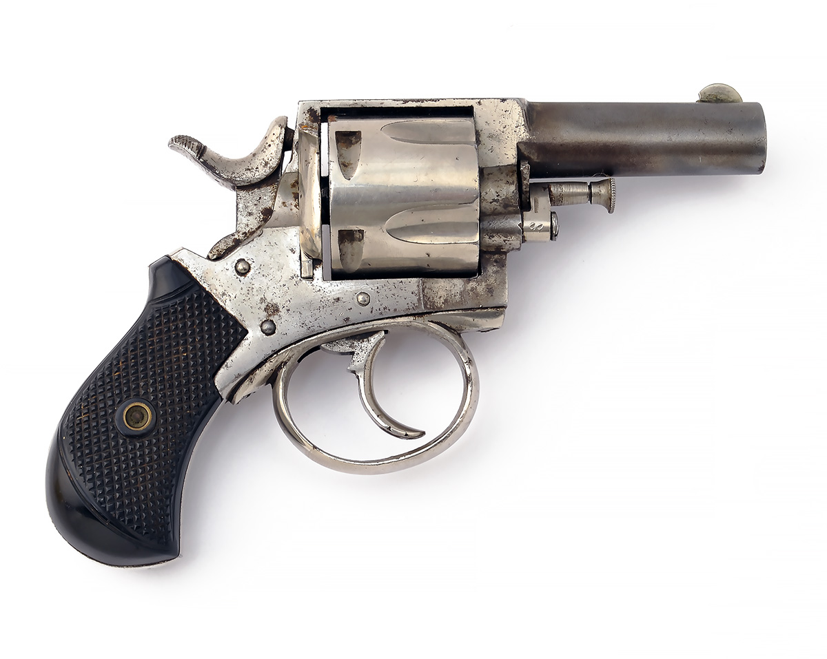 circa 1880 and almost certainly by Forehand & Wadsworth, USA, with nickel-plated ovoid 2 5/16in. barrel, nickel crescent fore-sight, 'bulldog' trademark to the left hand side of barrel throat, solid frame with sighting groove to the top-strap and also marked 'BRITISH BULLDOG', fluted cylinder, side loading gate, swing-out centrally mounted ejector and chequered hard rubber birdshead grips, much plated finish remaining
