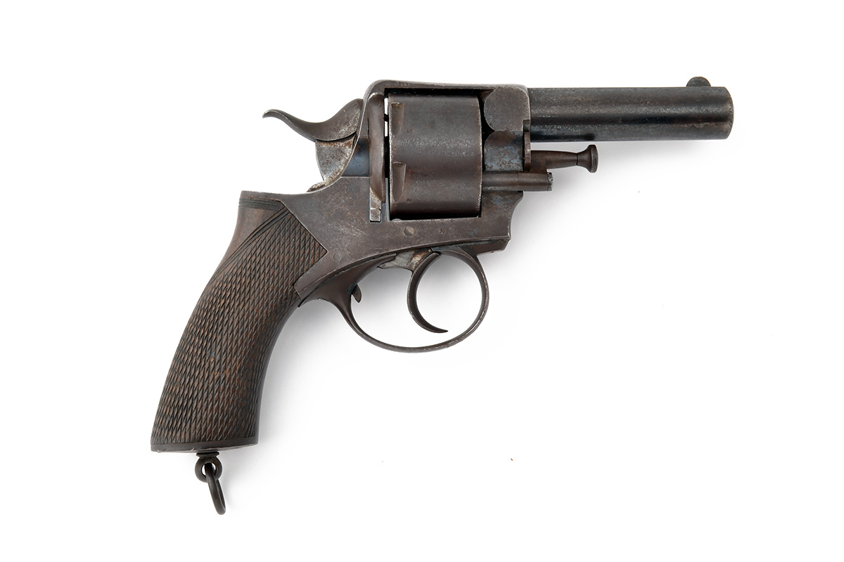 A .450 SIX-SHOT REVOLVER SIGNED V.R. BLAKEMORE, LONDON' MODEL 'RIC BULLDOG TYPE', serial no. V809, being a military service number, with ovoid 3 1/2in. barrel, plain six-shot cylinder, solid frame and chequered walnut one piece grip, traces of finish