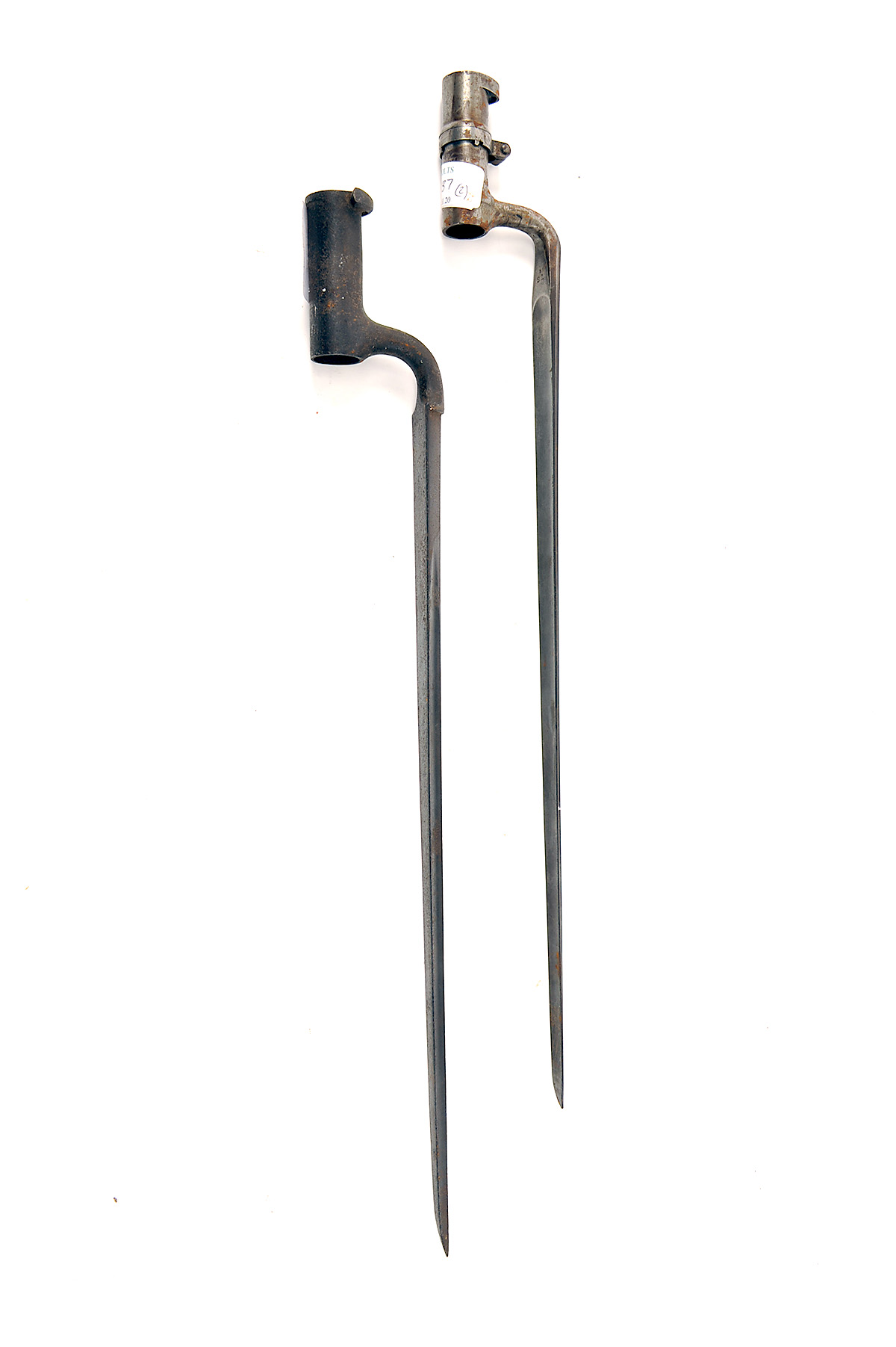 TWO ENGLISH SOCKET-BAYONETS, one for a Brown Bess (darkly stained and pitted), the other for a Pattern '53, both missing scabbards (2)