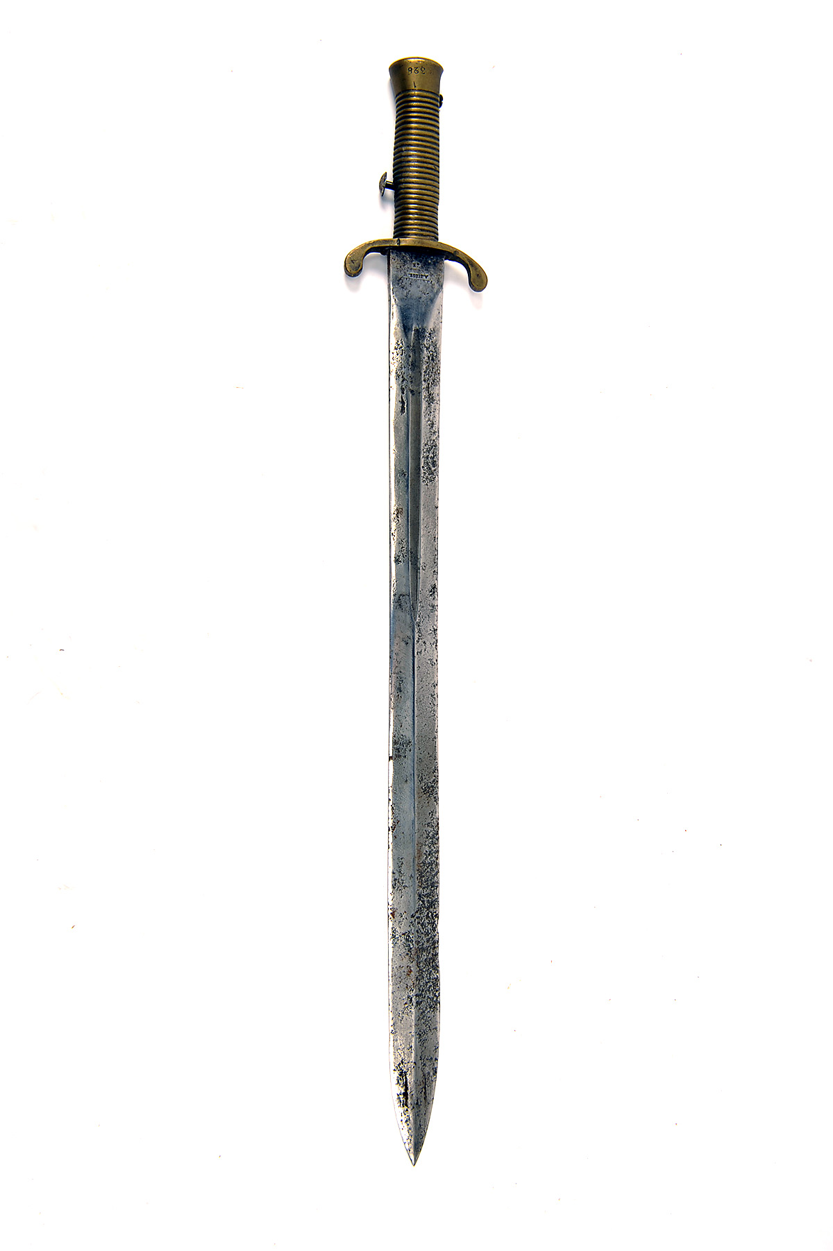 A BAYONET FOR THE RUSSIAN CONTRACT BRUNSWICK RIFLE, with 22in. leaf-shaped blade, short blind fuller, forte signed ''P.J. MALHERBE, LIEGE', the brass hilt numbered '328', missing scabbard
