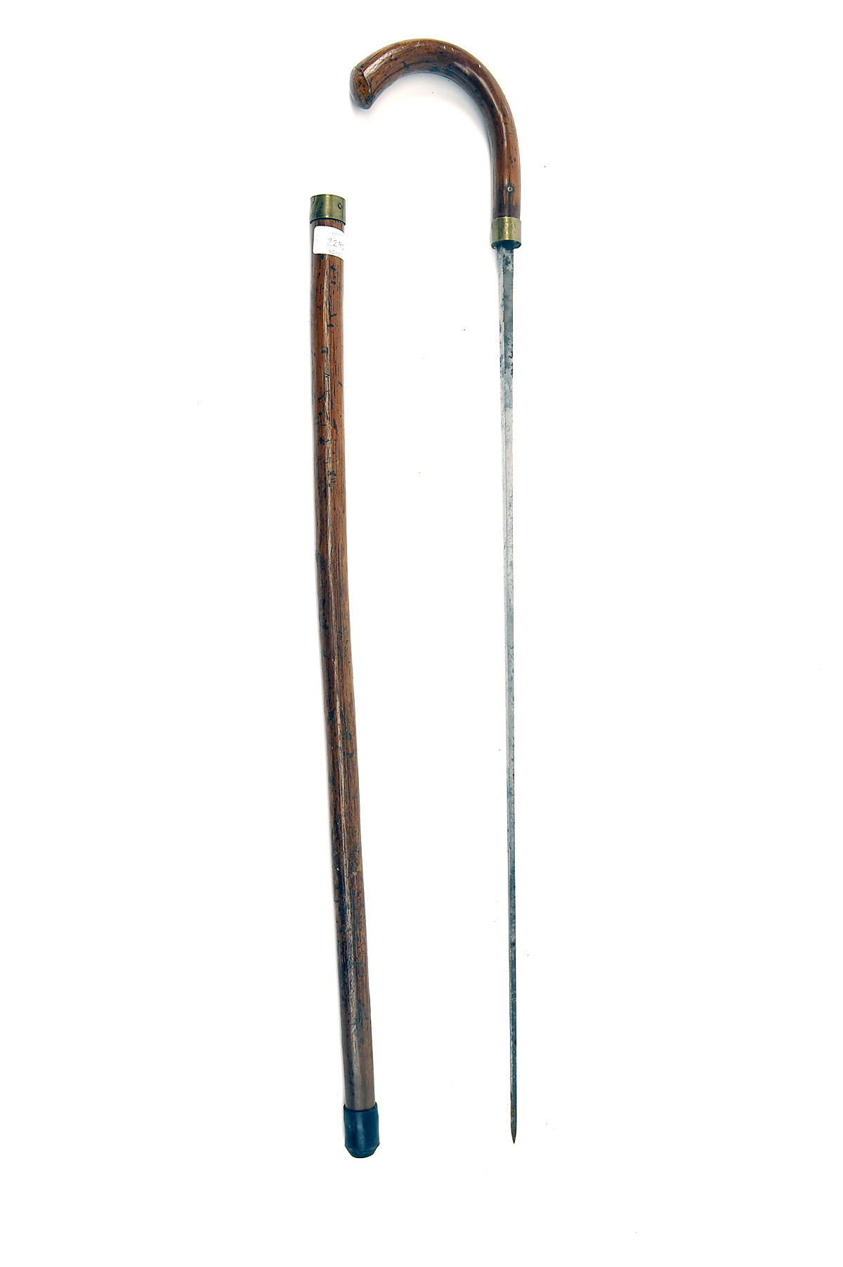 A CUSTOMS OFFICER'S BALE-PROBE SIGNED MOLE, BIRMINGHAM. circa 1840, with tapering square section 29 3/4 blade, naturalistic wood shaft and crooked hilt, 36 1/2in. overall with brass ferrules at joint