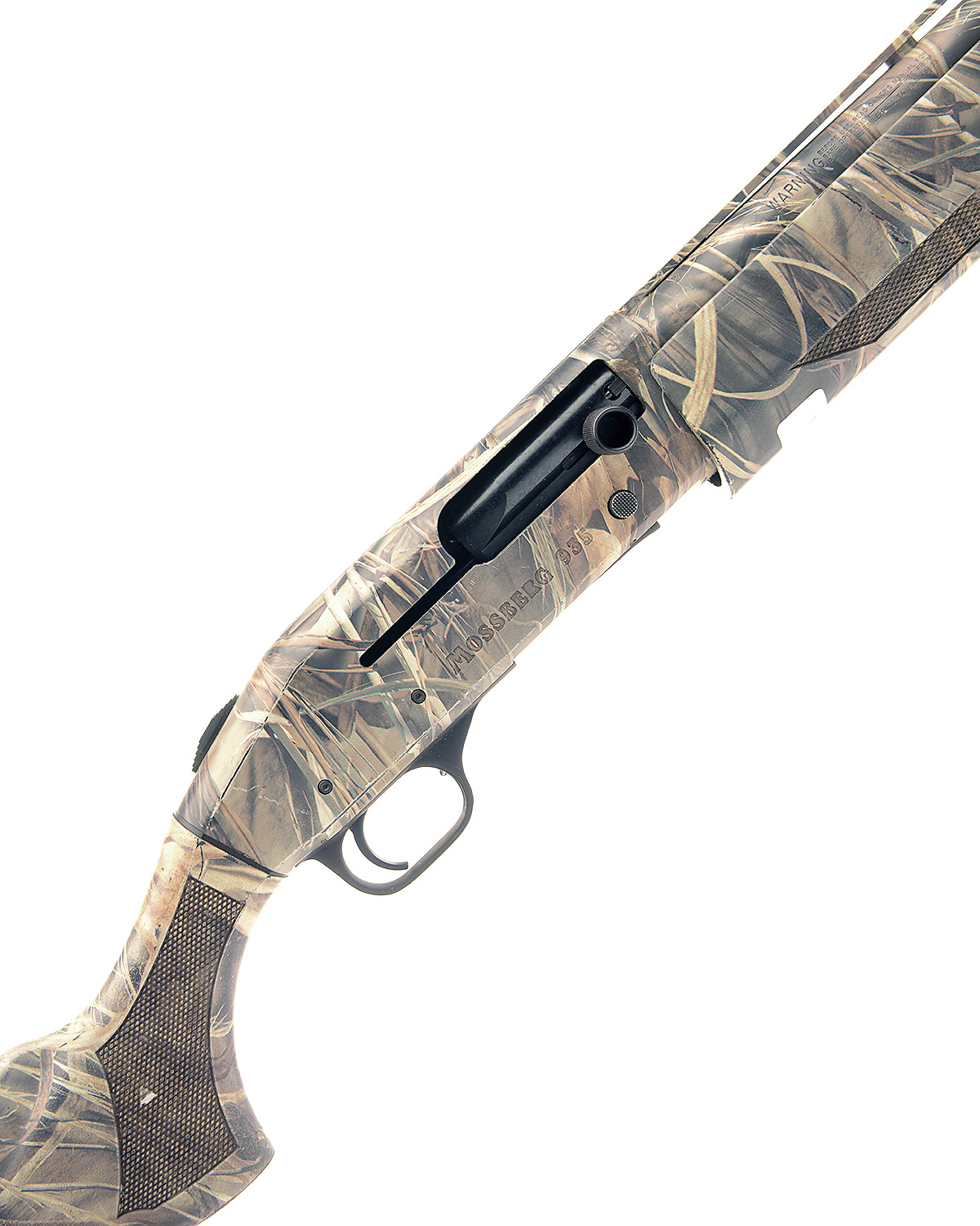 MOSSBERG 12-BORE (89MM) '935' SEMI-AUTO SHOTGUN, serial no. AM014328, restricted magazine, 28in. nitro barrel with 9mm ventilated matt rib, 89mm chamber, multichoke (no spares), manual top-tang safety, plain action, 14in. synthetic pistolgrip stock including ventilated rubber recoil pad, the whole in camouflage effect finish, weight 7lb. 15oz.