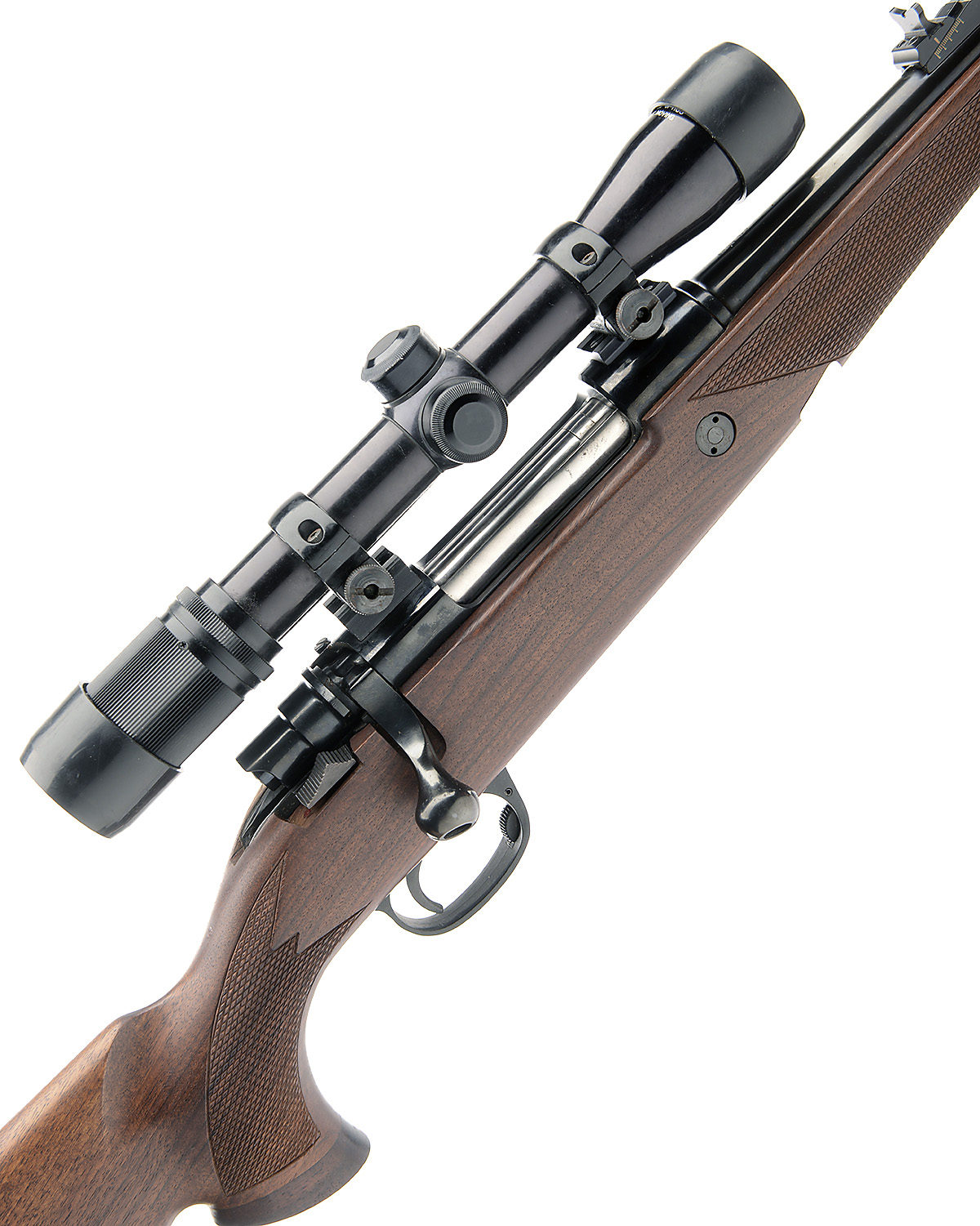 PARKER-HALE .30-06 BOLT-MAGAZINE SPORTING RIFLE, serial no. B-09274, 21 3/4in. nitro barrel, ramp-mounted bead fore-sight, v-notch rear-sight, fitted with a Zenison 6x32 telescopic sight, manual safety, hinged floorplate with rams head and scroll, 13 7/8in. well-figured pistolgrip stock (including recoil pad) with cheekpiece, sling eyes